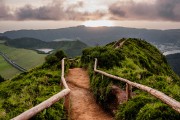 Los miradores del Nordeste muestran el lado más salvaje de la isla, antes de ascender a la sobrecogedora Lagoa do Fogo, suspendida entre nubes y lava. El viaje culmina en Furnas, entre fumarolas, sabores cocinados bajo tierra y el descanso cálido de sus aguas termales.