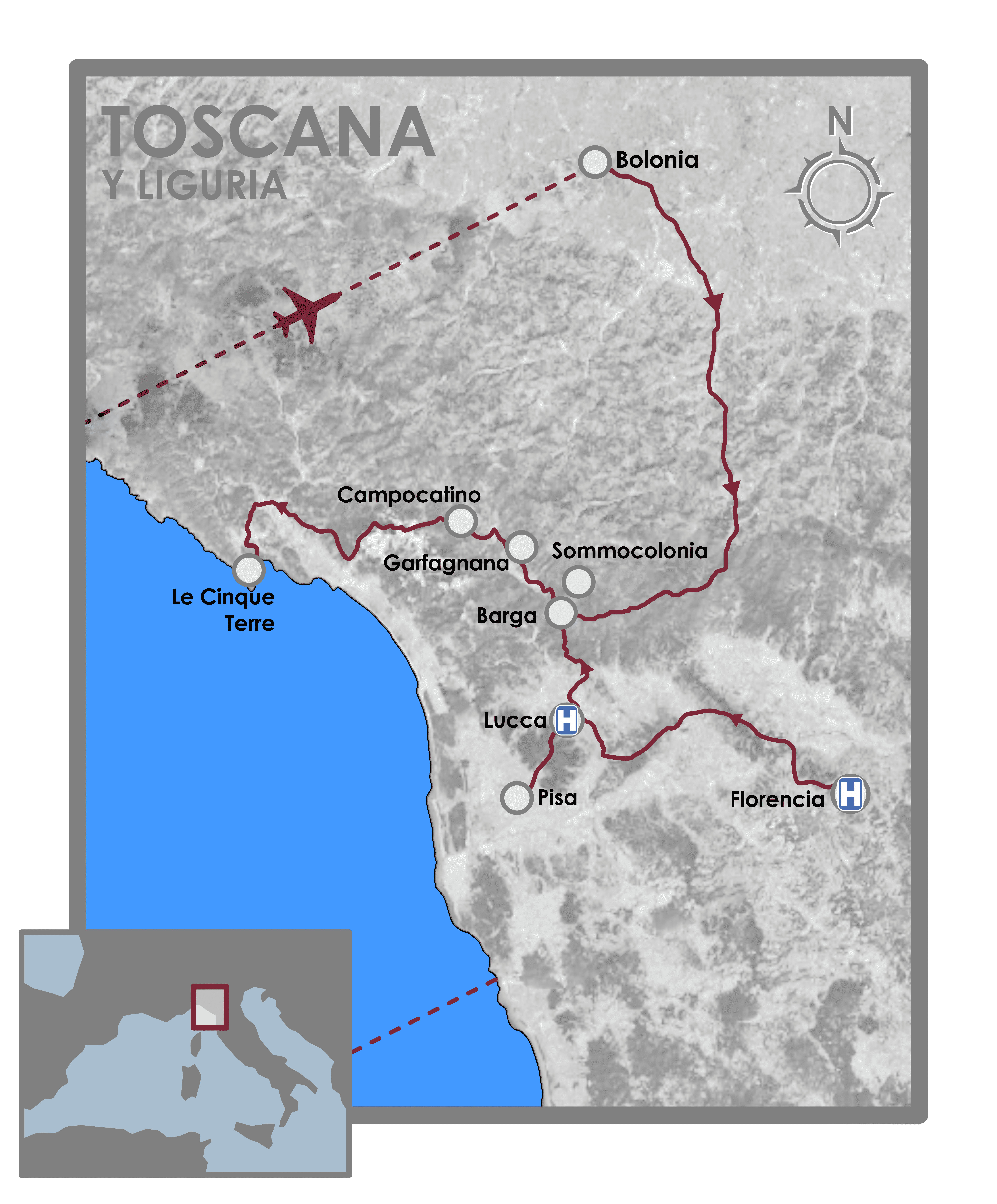 - DÍA 1: VUELOS MADRID/BARCELONA – BOLONIA Y TRASLADO A LUCCA