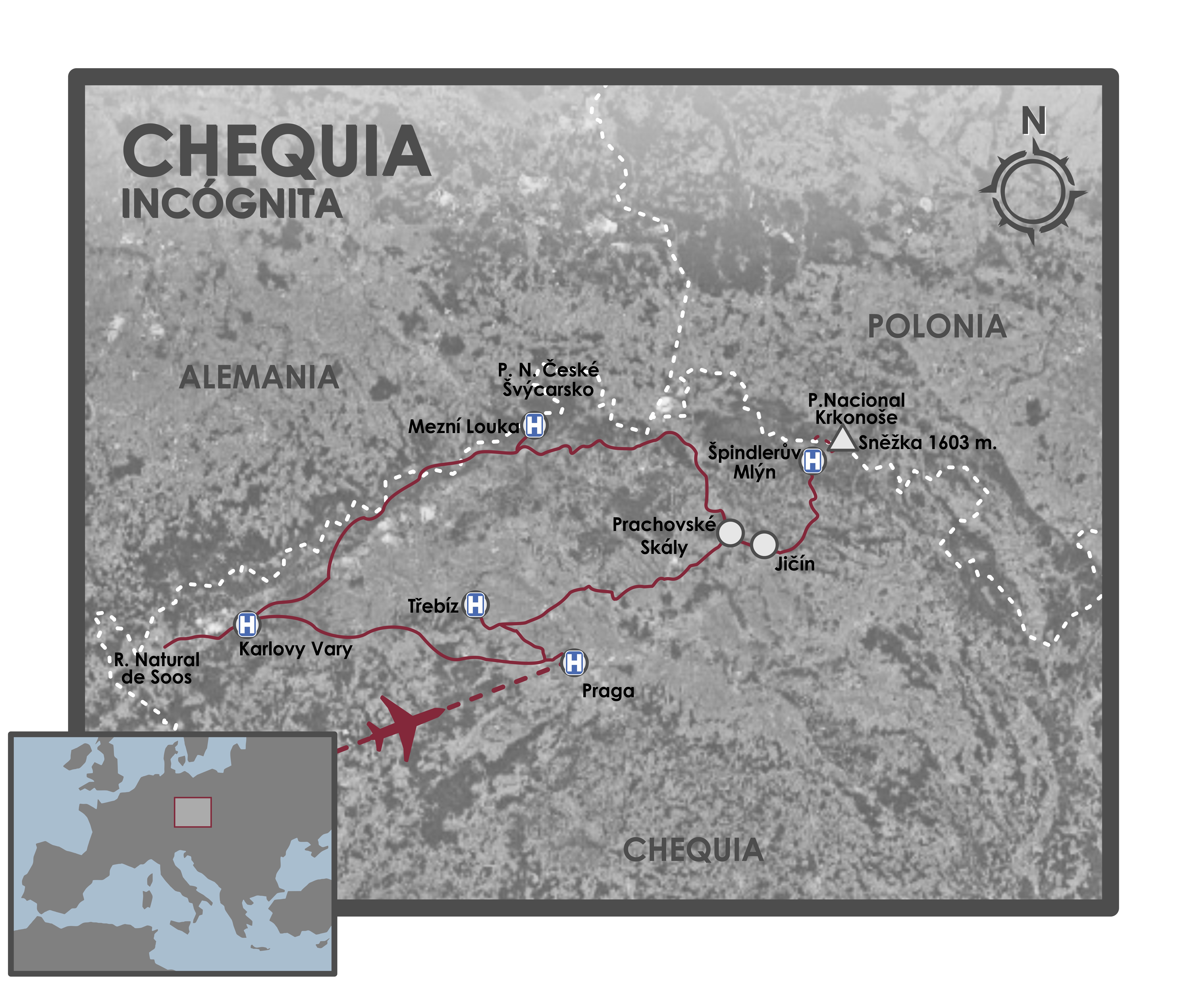 Visitaremos el Parque N. Krkonoše, con circos glaciares y bosques primarios, donde se asienta el “techo” de Chequia. El Parque N. České Švýcarsko, conocido como “Suiza Checa”, una zona increíble llena de gargantas y desfiladeros. El Castillo y monasterio eremita de Sloup v Čechách y el sabor rural de Třebíz. Conoceremos la extraordinaria ciudad balneario de Karlovy Vary, con sus historias de la Belle Époque. Terminaremos nuestra ruta en la deslumbrante Praga, una ciudad repleta de monumentos, bellísimas calles y plazas, ambiente callejero, clubs de jazz, cafés y cervezas en terrazas donde la gente disfruta del agradable verano del Este.