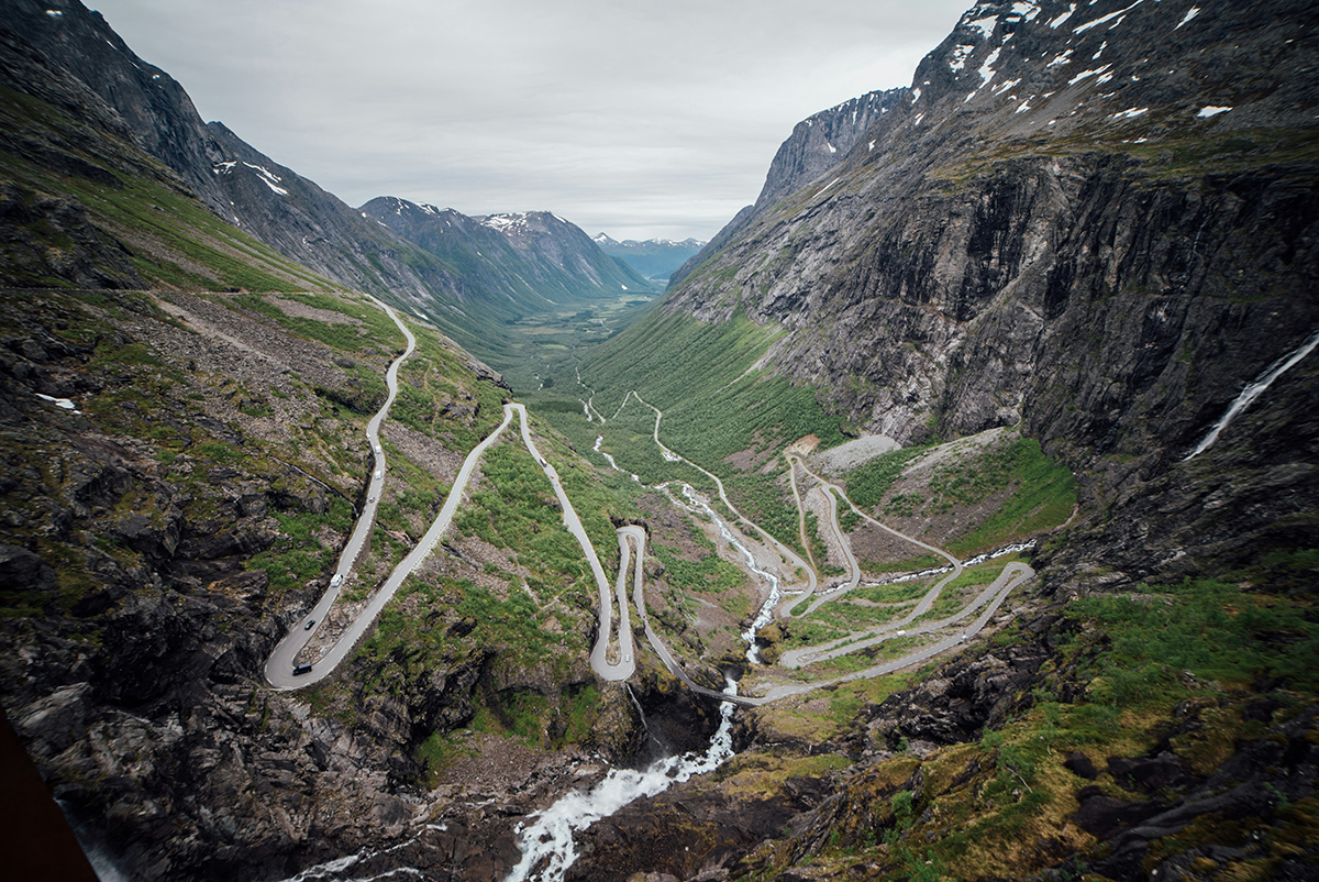 La ruta avanza por las legendarias Norwegian Scenic Routes hasta alcanzar Senja, donde el paisaje se vuelve aún más salvaje. Remar en kayak en el Ártico entre fiordos silenciosos y ascender al Husfjellet para contemplar el mar infinito son experiencias que transforman la mirada.