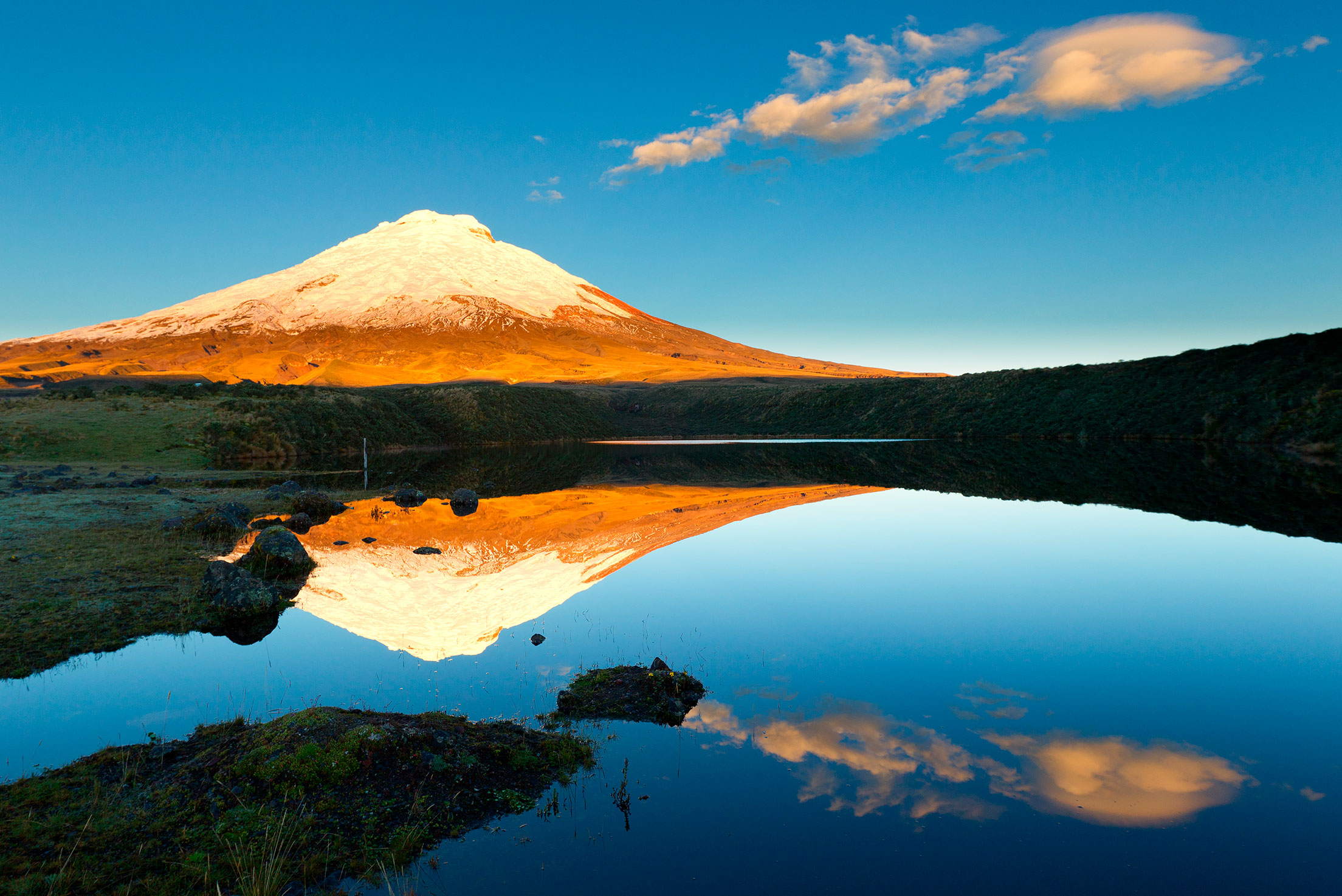 Desde la colonial Quito, Patrimonio de la Humanidad, el recorrido nos lleva al vibrante mercado de Otavalo, a los paisajes de altura del Parque Nacional Cotopaxi y a la impresionante Laguna Quilotoa, un cráter volcánico de aguas color esmeralda. En la reserva del Chimborazo, entre arenales y glaciares, la naturaleza andina muestra su rostro más salvaje.